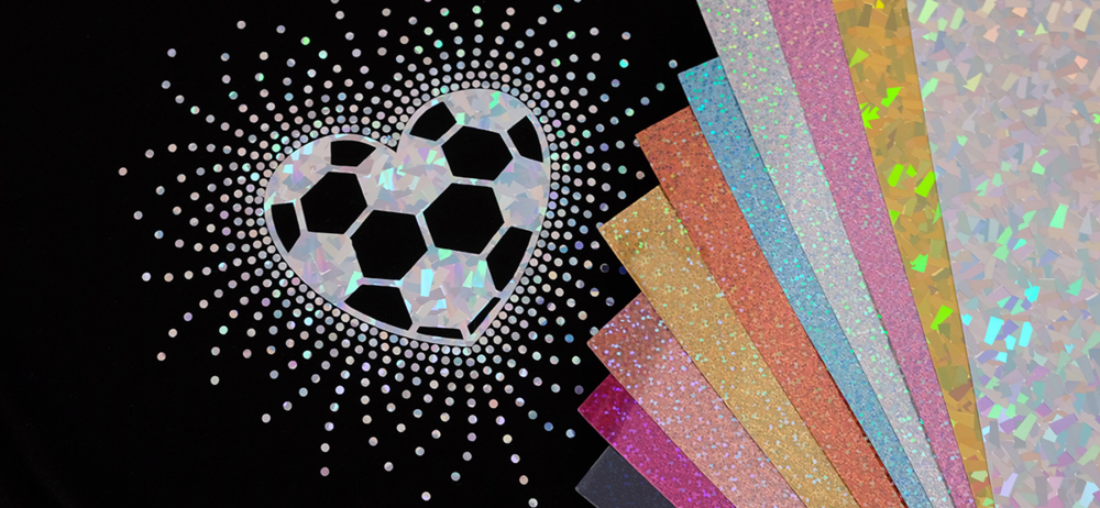 La línea Holographic también cuanta con una selección de colores perlados translúcidos a diferencia de cualquier otro material, lo que le da a tus diseños un acabado opalescente que cambia según el color de la prenda.